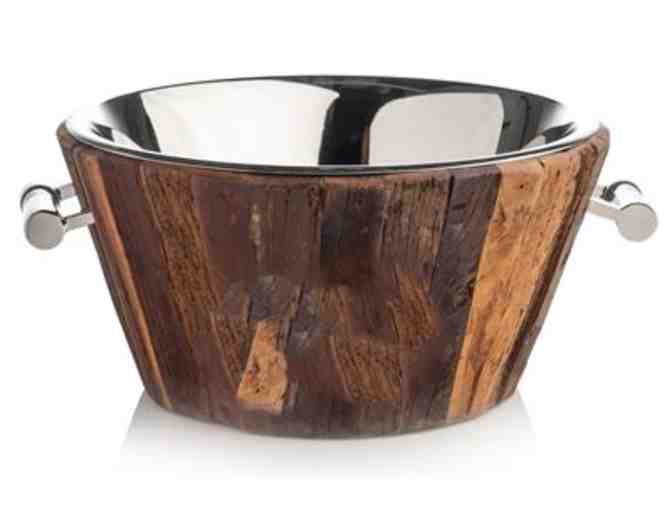 Chill your bubbly in style with this Chalet Wood Champagne Cooler by Abigail's from Haskell Interiors. Using re-claimed wood stained in a rich mahogany color, this exquisite piece is an outstanding addition to your bar collection. The cooler comfortably accommodates 3-4 wine bottles.