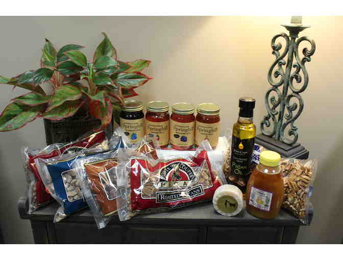 The Louisiana Farm Bureau would like to offer a selection of native products which are featured in our seasonal Holiday Shop. For these items and more, visit our website: https://lafarmbureau.org/holiday-shop. One pound bags of pecan halves, pecan candy, roasted pecans, spicy roasted pecans, and chocolate pecans paired with a bottle of pecan oil, goat milk lemon geranium soap bar, blackberry, pepper jelly, mayhaw jelly, and muscadine jelly gift box, and a jar of honey.