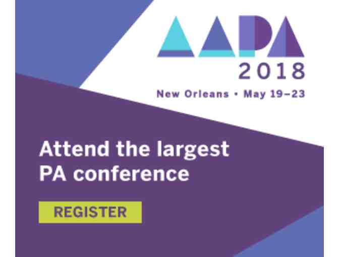 Connect with leading CME, new career opportunities, your PA peers, New Orleans – and do it all in one place at one time, at the only national PA conference. The winner of this item will recieve 1 registration to the AAPA 2018 Annual Conference in New Orleans, Lousiana to be held May 19-23, 2018.