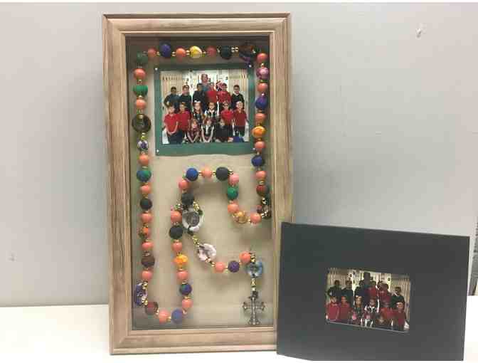Rosary of student-made beads and photo book detailing which student made each bead.