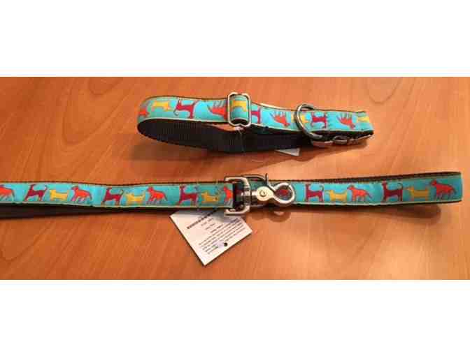 Finally: a 5-foot designer leash and collar your pet can love! Size and design are exchangeable through Uncommon Paws, an all-natural and designer pet supply store in the Old Port, Portland, Maine.