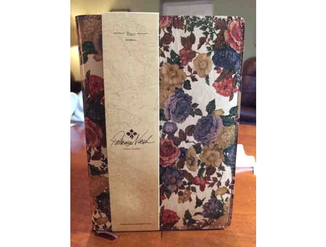 Patricia Nash Leather Vinci Journal.  6" x 8.5" leather trim journal with floral cover design and lined pages.