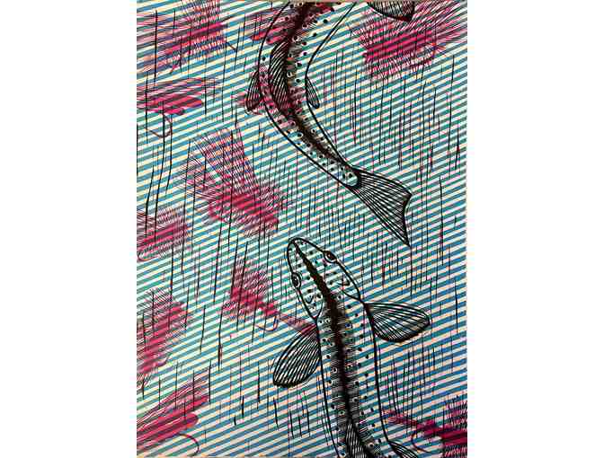 This print by Wandering Blue Lines' embodies some of the best things about fly fishing for trout in the summertime. Big, bushy, brightly colored dry flies, cool clean water, and trout all layered together like a memory of a good day spent on the water.