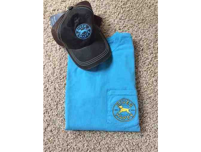 River Happy Tee blue in size Small and River Happy Weathered Trucker in Brown/Blue.