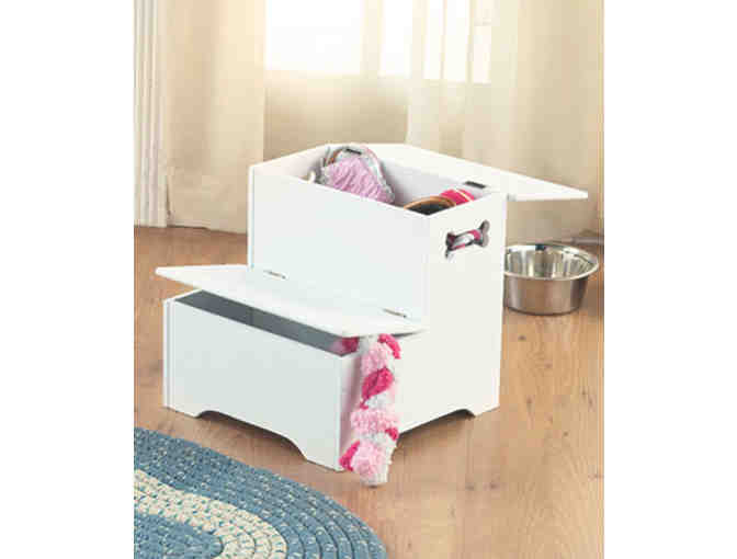 These sturdy wooden stairs make it easier for small dogs or older dogs and cats with less mobility to get to sofas, beds and other areas off the ground. Open the top of each step to find a storage space ideal for keeping pet toys and supplies. Cute cutout bone shapes on the sides of the larger storage area also function as easy-carry handles.