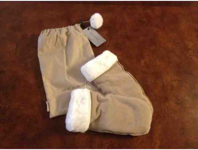 Get ready for winter with these lovely Brookstone Chillbuster Mittens. This lot features two pair of suede mittens. Super warm with faux fur trim. Includes a matching storage bag.