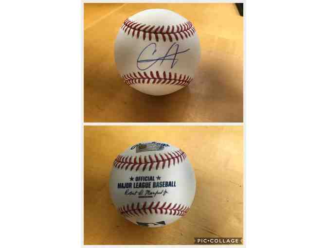 This baseball is autographed by Red Sox catcher, Christian Vazquez.