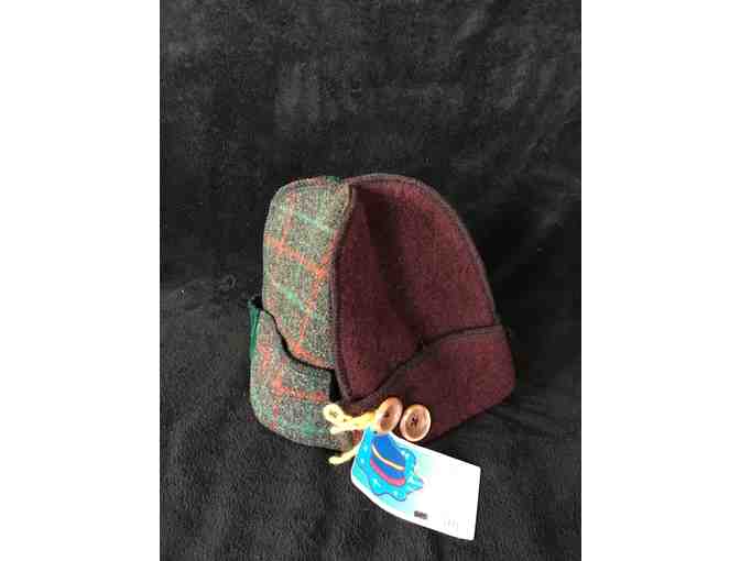 Donated by Heather Godin, this is a handcrafted hat from Maine, made by Ramona Bachman. All recycled material of wool or wool blends.