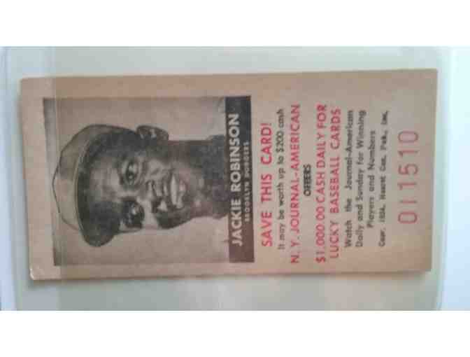 This issue featuring Dodgers Hall-of-Fame icon Jackie Robinson is one of 59 unnumbered cards within the 1954 NY Journal American set. All cards featured players from the Giants, Yankees or Dodgers. This was a one-year only issue.