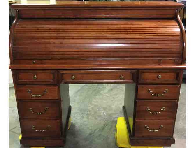 Oak roll top desk owned by one of the men who built the original school 60 years ago. Must be picked up at SPX.