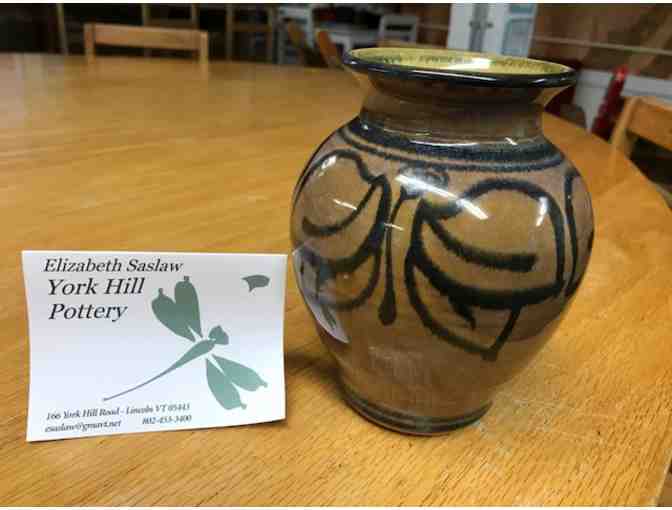 This lovely stoneware vase was made in Lincoln, VT by Elizabeth Saslaw of York Hill Pottery.