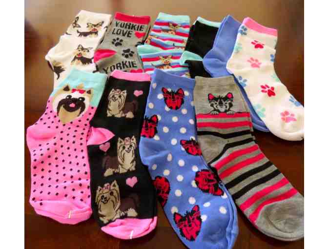The perfect gift for yourself, or for the Yorkie mom (or aunt, sister, or grandmother) on your list. Ten pair of socks celebrating this diminutive breed with the big attitude we love. Each sock has a different design that will show off your love for this adorable breed!
