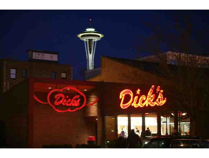 Come and enjoy 4 tickets to the observation deck at the Space Needle followed by dinner at the iconic Dick's Drive-in. Your $30 in gift certificates can be applied at any Dick's Drive Location (Wallingford, Capitol Hill, Holman Road, Lake City, Queen Anne,and Edmonds). Also includes commemorative postcardsand "60 Years of Memories" book.