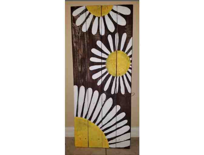 The winning bidder will receive this Daisey wooden pallet art from Tinkered Tinders.