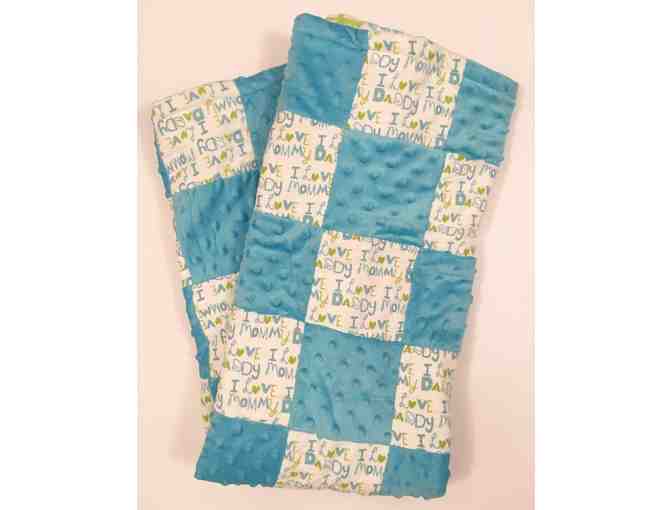 This beautiful blue, green and white baby quilt will bring joy and delight not just now but for years (and generations) to come. This quilt is soft, cozy and handmade with care.