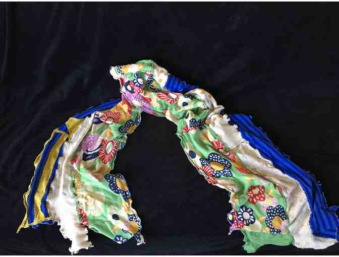 This is an incredibly soft and beautifully crafted handmade scarf, measuring approximately 5 1/2 feet long. This is lightweight and would make any outfit really pop!