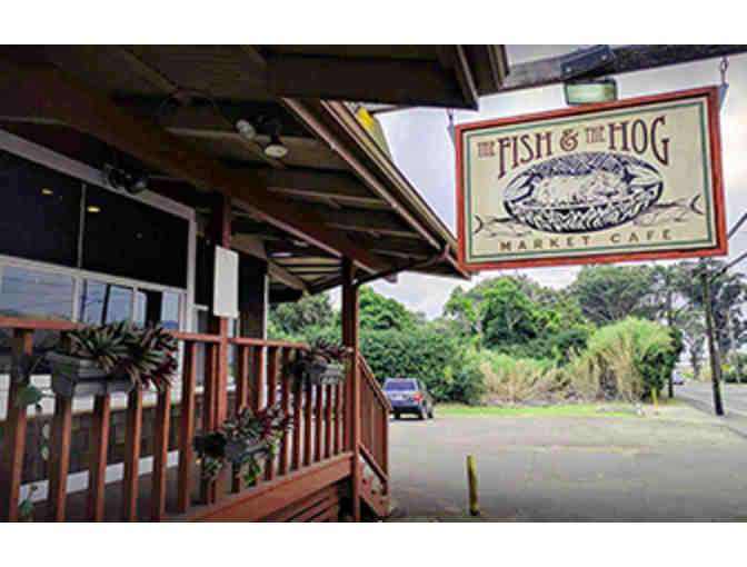 Gift certificate for The Fish and The Hog, one of Waimea’s favorite family-style eateries. Great food, friendly bar, easy parking, casual atmosphere and lots of fun!