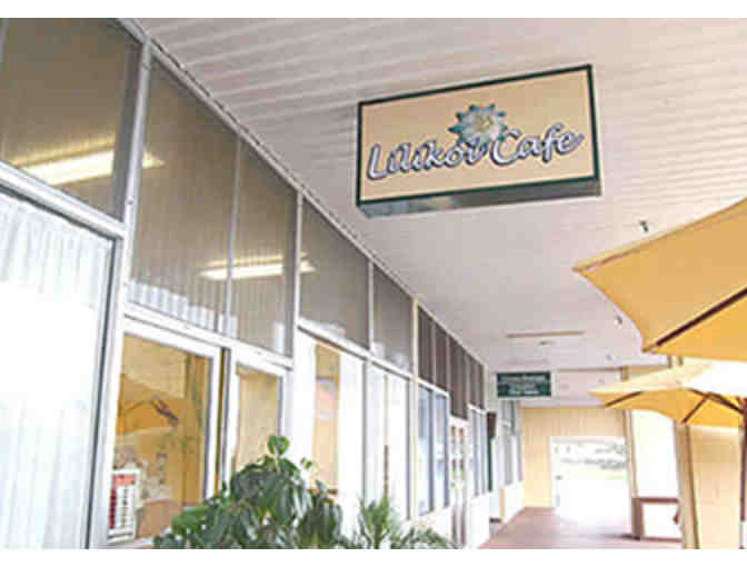 Gift Certificate to Liliko‘i Café, one of Waimea’s favorite spots for breakfast and lunch. Locally sourced, healthy salads, sandwiches, fresh bread, gorgeous desserts and other yummy things conveniently located at the Parker Ranch Center.
