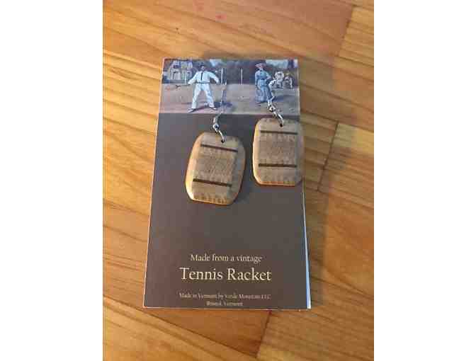 These Designer Classic one of a kind handmade earrings were made from a vintage tennis racquet - handmade by Verde Mountain in Bristol Vermont