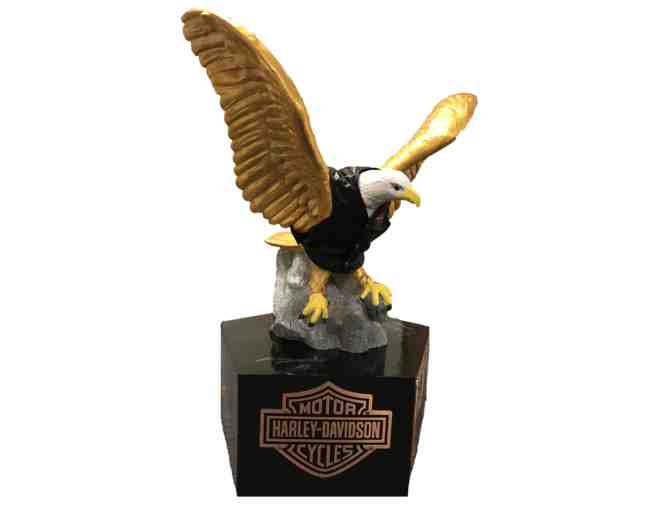 The Harley Motor Company Eagle is signed by Willie G. Davidson and Bill Davidson