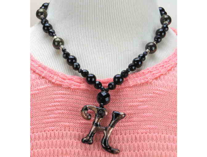 #753: 1/Kind Necklace w/Semi Precious Gems! Unique "H" Initial Pendant!