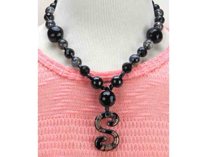#756: 1/Kind Necklace w/Semi Precious Gems! Unique "S" Initial Pendant!