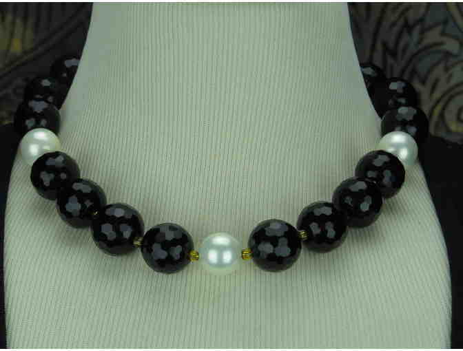 CLASSIC ! Features South Sea Shell Pearls and Faceted Onyx!