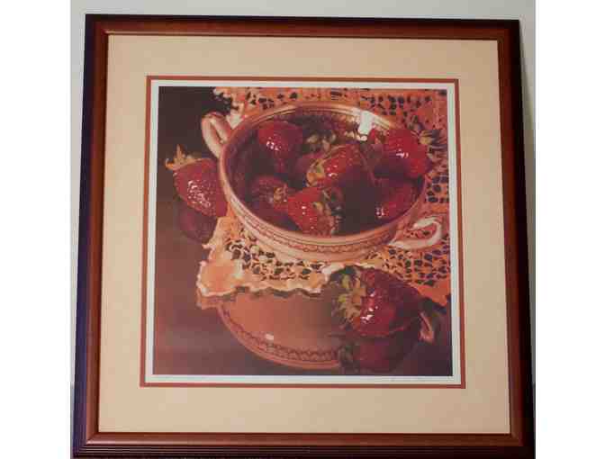 “Strawberries,” by Kim Starr, 2003. #239/500 prints. Image approx. 18” x 18”. Framed image approx. 28” x 28”
