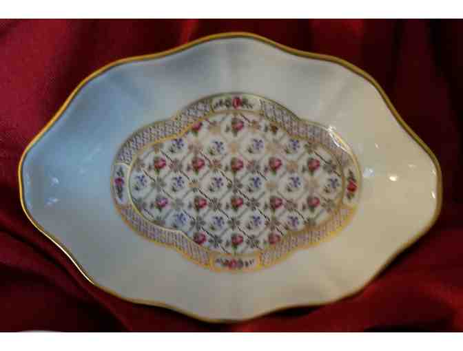 The intricacies of this small Limoges Castel is a delight to the senses and includes a certificate of authenticity. Use a side or candy and add a bit of charm to any table.