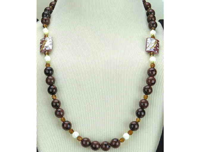 2 Hand Painted Owls on Onyx are featured in this 1/KIND GEMSTONE NECKLACE #240