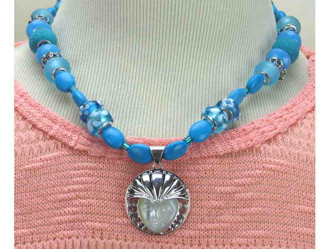 1/Kind Necklace with Semi Precious Gems! Hand Carved Pendant from Bali! #733