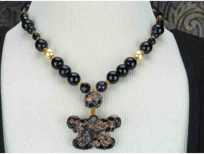 - FEATURES: BUTTERFLY ART GLASS PENDANT AND BLACK ONYX