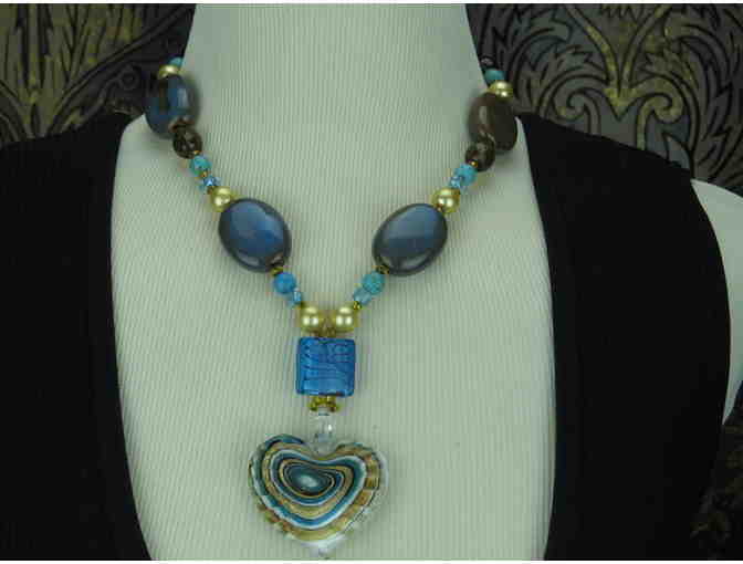 Romantic Heart Necklace w/Turquoise, Smokey Topaz, Austrian Crystal Pearls, Pendant!