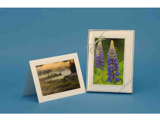 Boxed set of note cards, featuring different scenes of nature photography taken by Stan Trzoniec of Outdoor Photo Graphics. From woodlands to waterfalls, lupine to fox, each beautiful photo card is wrapped in a plastic sleeve to protect it from harm. Twelve different cards in the set.