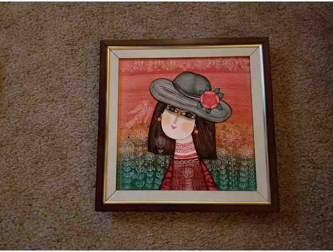 Framed "Young Girl with Silver Hat" (30cm x 30cm) - Painting by Armen Vahramyan (Armenia)