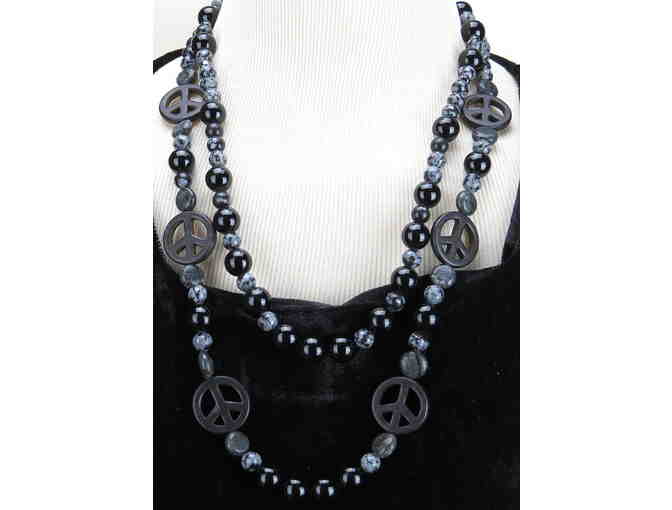 "PEACE TRAIN" Snowflake Obsidian, and Onyx featured in this 1/KIND GEMSTONE NECKLACE #338