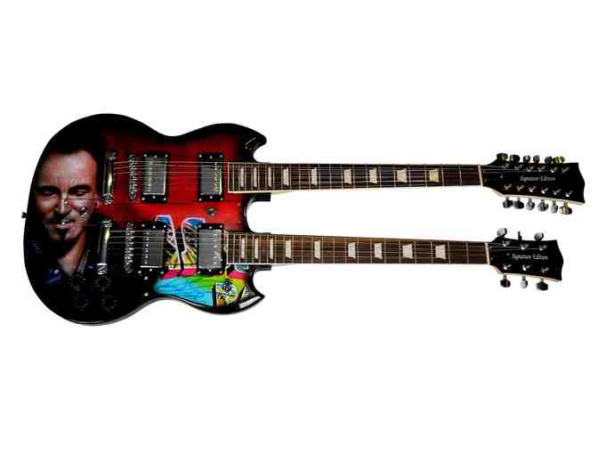 Bruce Springsteen Autographed Custom Airbrushed Double Neck Guitar