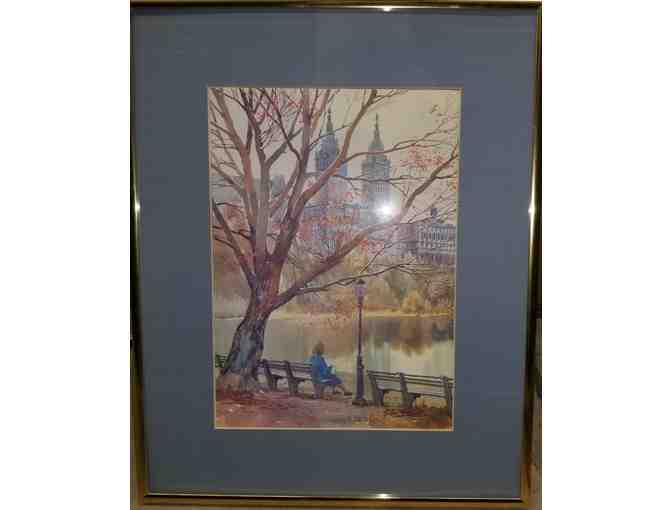 Framed Watercolor Painting "Late Afternoon Paper in the Park" by Roberts Jr