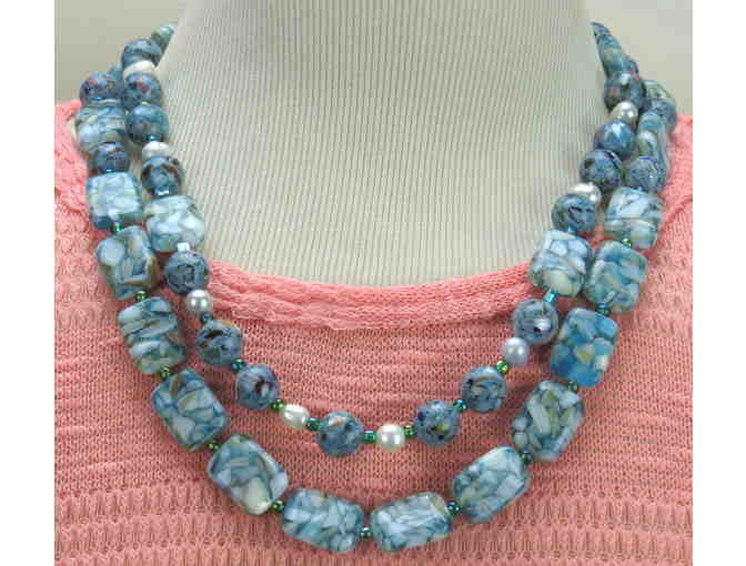 #769: 1/Kind Necklace features Semi Precious Gemstones! BEAUTIFUL ORNATE Mother OF Pearl !