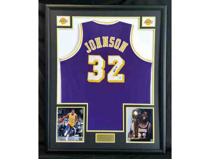 Few athletes are truly unique, changing the way their sport is played, and Earvin "Magic" Johnson is one of them. As a tall and talented point guard, "Magic" changed the game forever in the NBA. "Magic" has autographed this Los Angeles Lakers jersey for his fans! Be the lucky winner to take this framed jersey home and hang it in a place of honor.