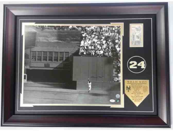This nostalgic moment is featured in a 16x20 Black & White Photo Autographed by Willie Mays.