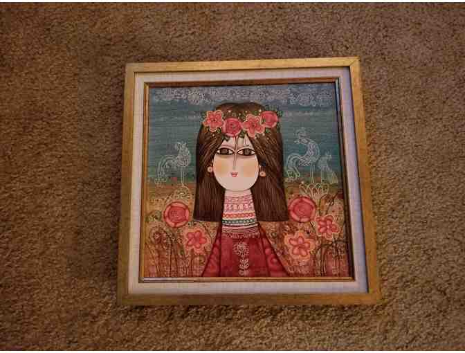 Framed "Young Girl in Floral Field" (30cm x 30cm) - Painting by Armen Vahramyan (Armenia)