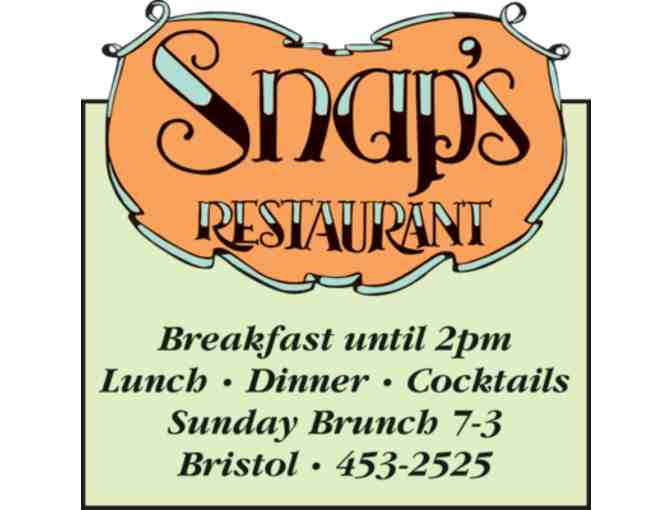 $50 Gift Card to Snaps Restaurant in Bristol, VT
