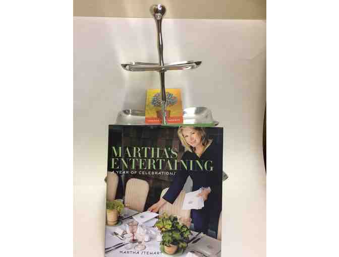 Three tier, silver tone serving platter with $25 gift certificate to Orange Tree Imports and the book "Martha Stewart's Entertaining A Year of Celebrations."