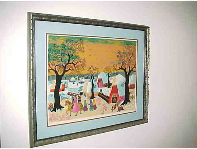 Winter Snow Villiage Numbered Print Signed by Artist Janet DuBois. Comes with certificate of authenticity.
