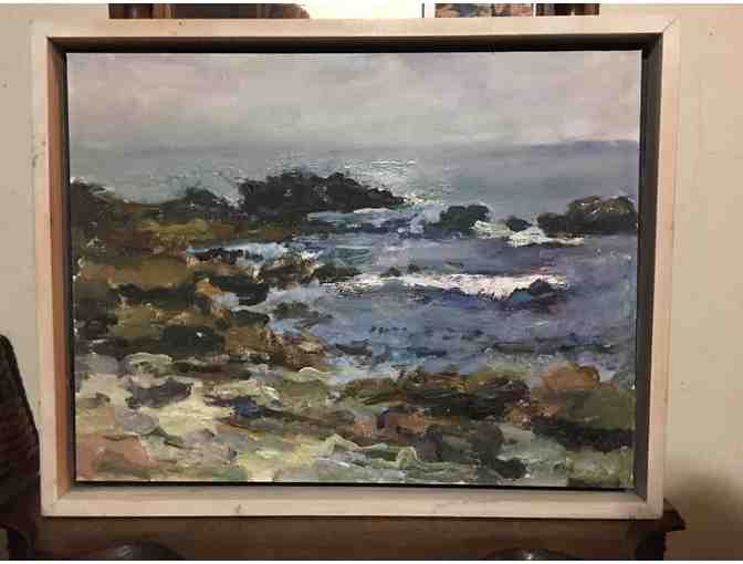 Brittany Coast is a rich seaside painting, colorful and textured, by one of Baltimore's treasures, Raoul Middleman. His work is prolific and provocative, and his paintings have been described as "intelligent, messy, and utterly masterful." This framed oil painting on canvas measures 22" X 28". Over the past half-century, Middleman has come to be widely considered one of Baltimore's most important contemporary artists, along with Grace Hartigan and Joseph Sheppard.