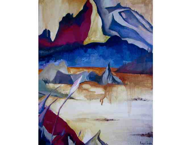 Inspired by the colors of Georgia O'Keefe, my "Yosemite" series abstracts the natural forms of trees, mountains and lakes of Yosemite National Park. Areas of thick blended brushwork and drips of thinned-out paint create a push and pull in the surface texture, translating nature's complexity into simplified geometric forms. These oil paintings on canvas have one inch cradled sides, with the painting wrapped around the edges. They can be framed or hung as is.