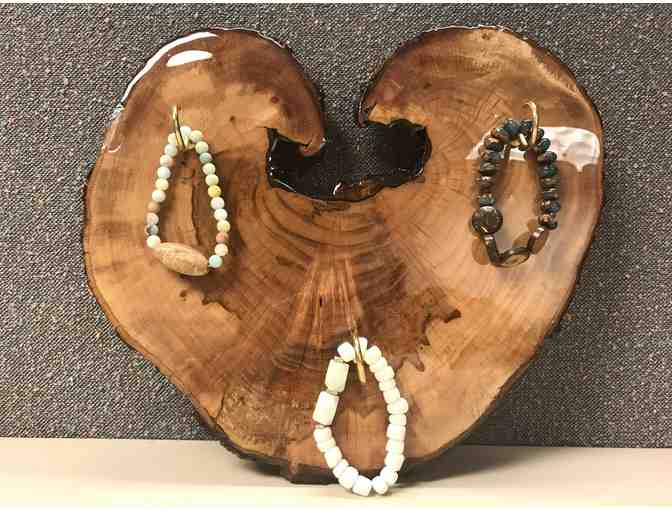 Beautiful handcrafted cypress key holder and three handmade bracelets by south Georgia artisans.