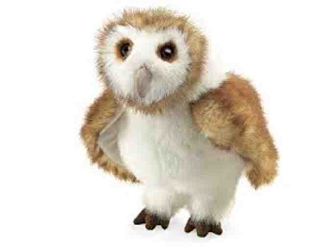 With her pretty heart-shaped face and big black eyes, this Barn Owl puppet seeks a perch atop your arm. Whooo could be cuter?