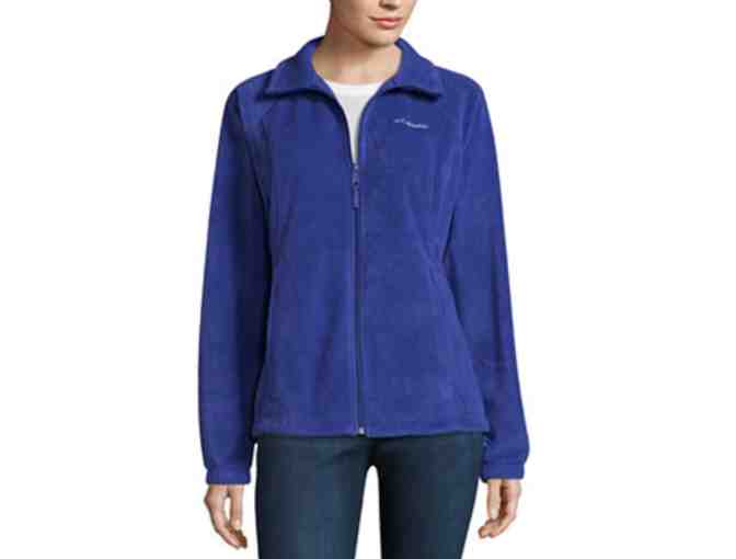 The warm fleece of this Columbia zip-front jacket keeps you cozy and comfortable during all your outdoor adventures.